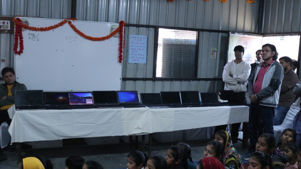 On 7 December 2025, under the auspicious blessings of Pujya Gurudev Acharya Shri Roopchandra Ji Maharaj, 10 laptops and 12 sewing machines were distributed to Pakistani Hindu refugees at our Majnu Ka Tilla camp.