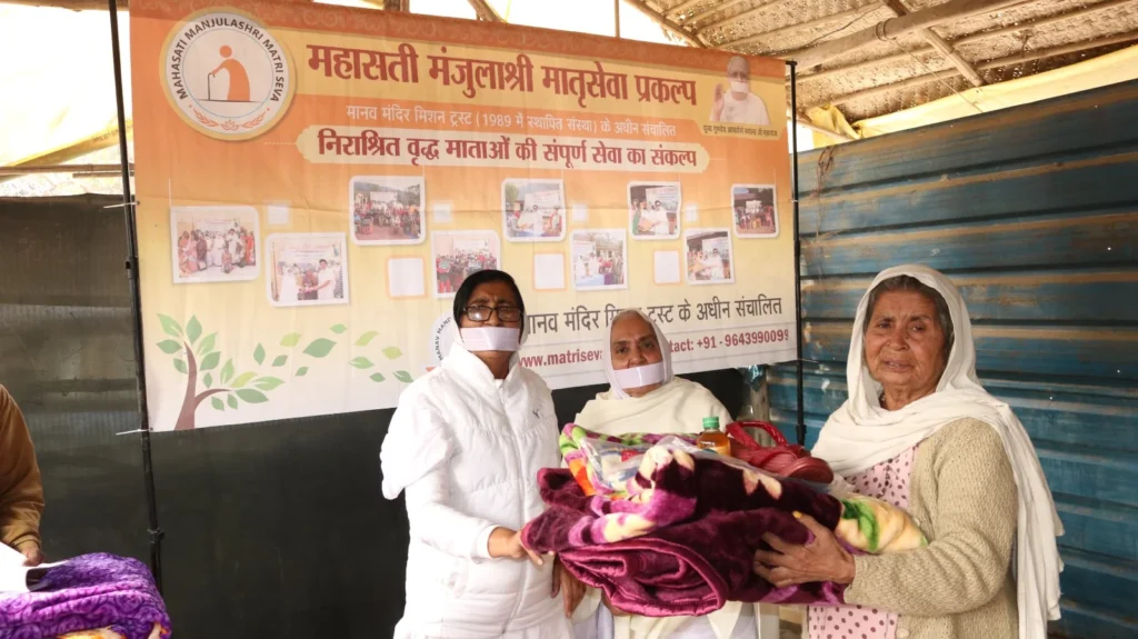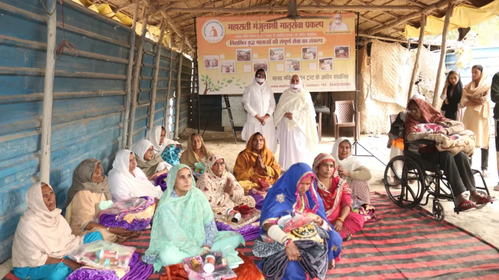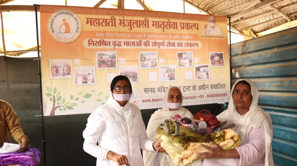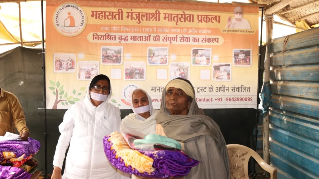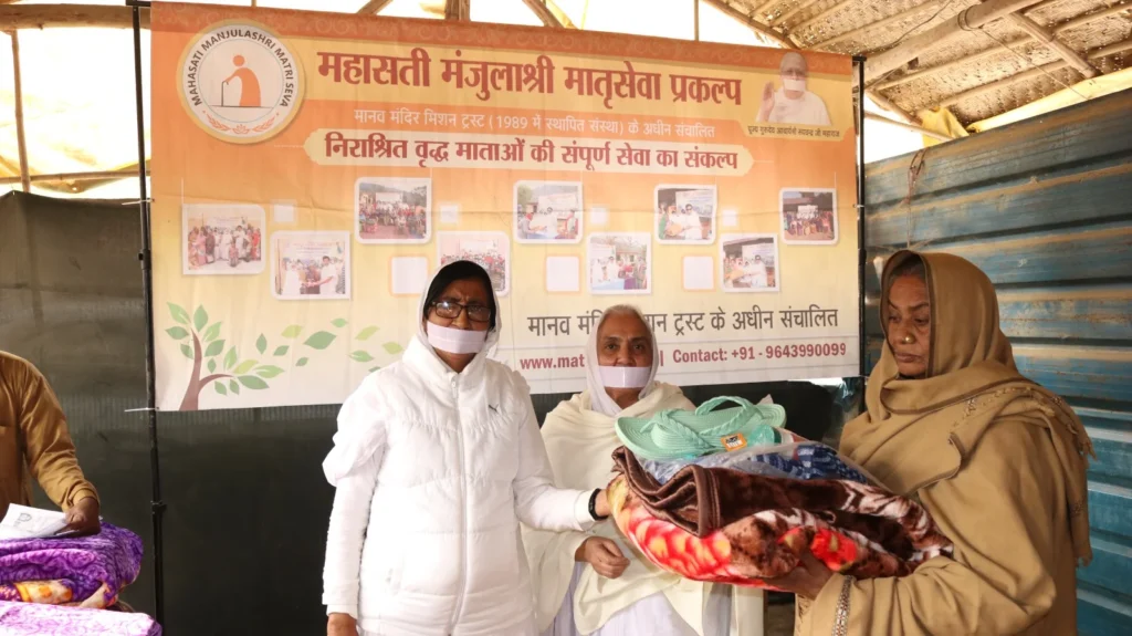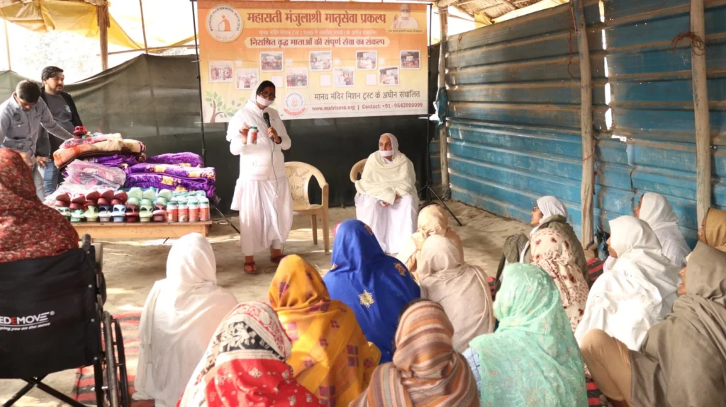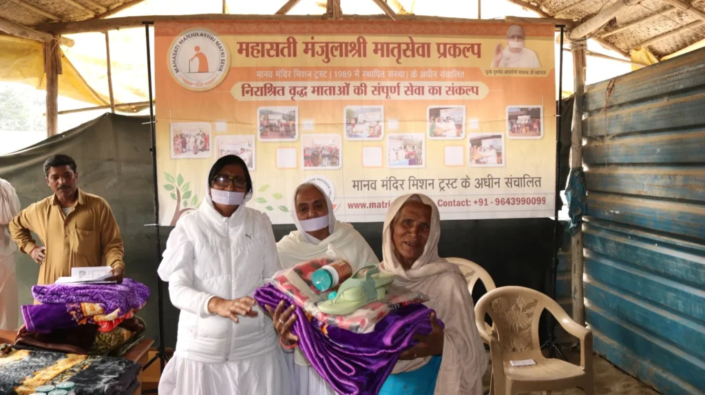 During the visit, the team met with elderly mothers and engaged in heartfelt conversations about their health and life experiences. Understanding their needs, the team distributed winter clothes, blankets, shoes, nutritional food, and multivitamins.