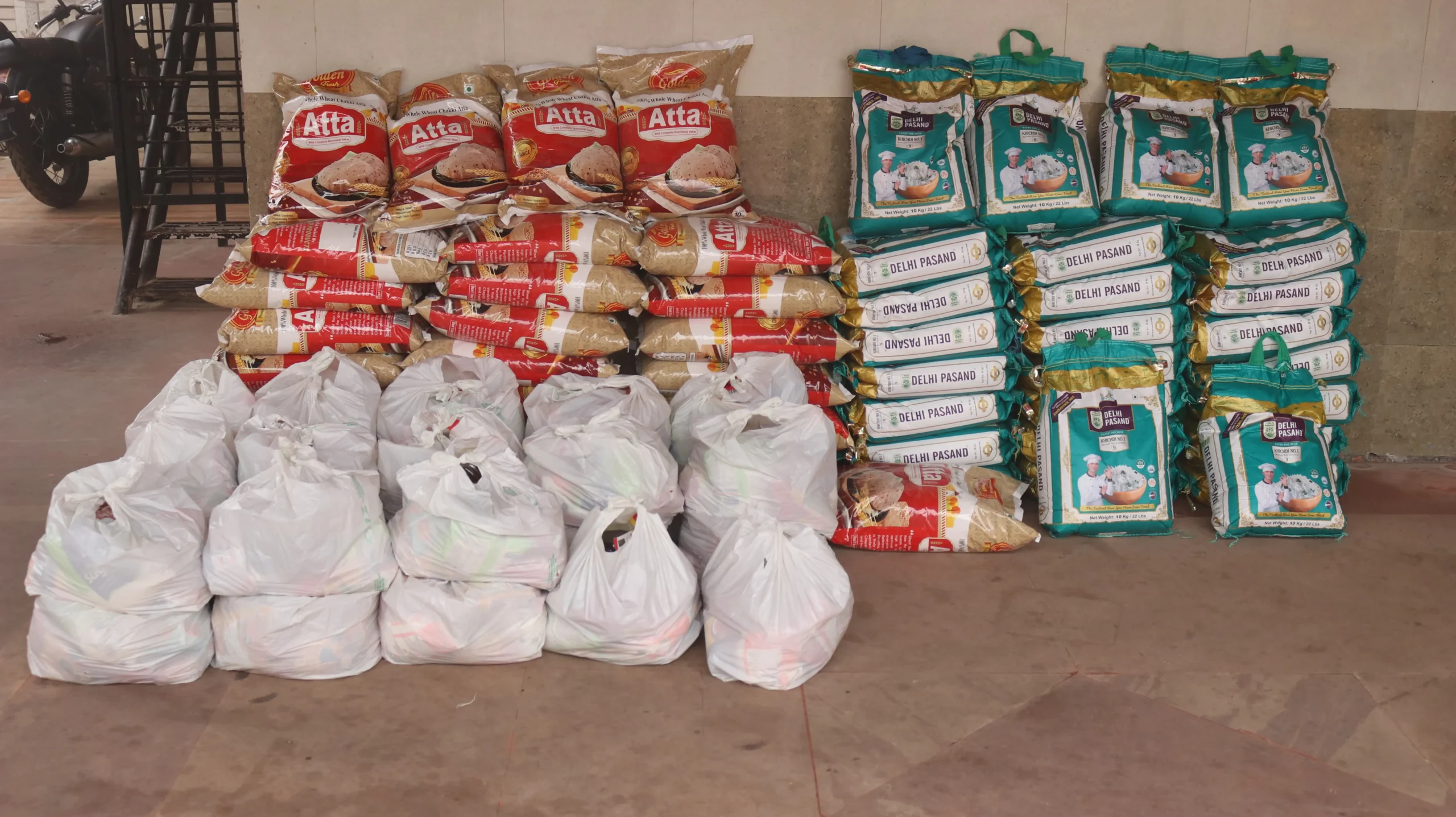 - Ration kits (flour, daal, rice, oil, spices, etc.)